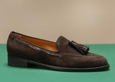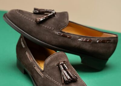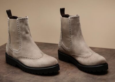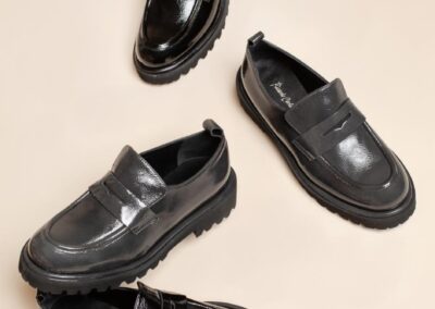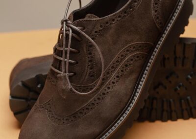 Ogni calzatura nasce da un dialogo continuo tra tradizione e innovazione: mani esperte, pellami italiani, un’estetica curata nel minimo dettaglio.