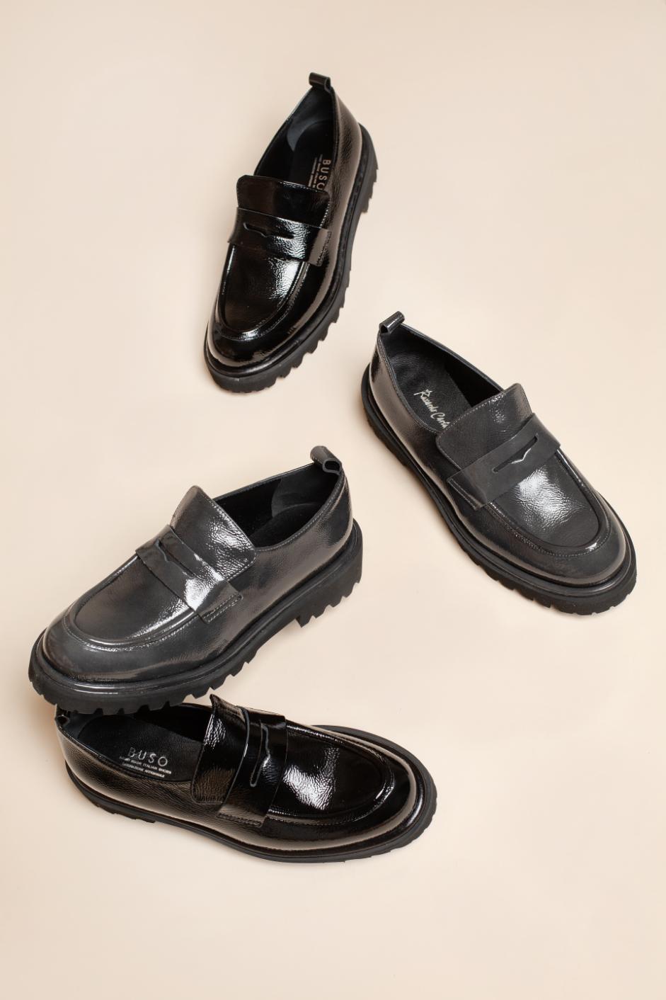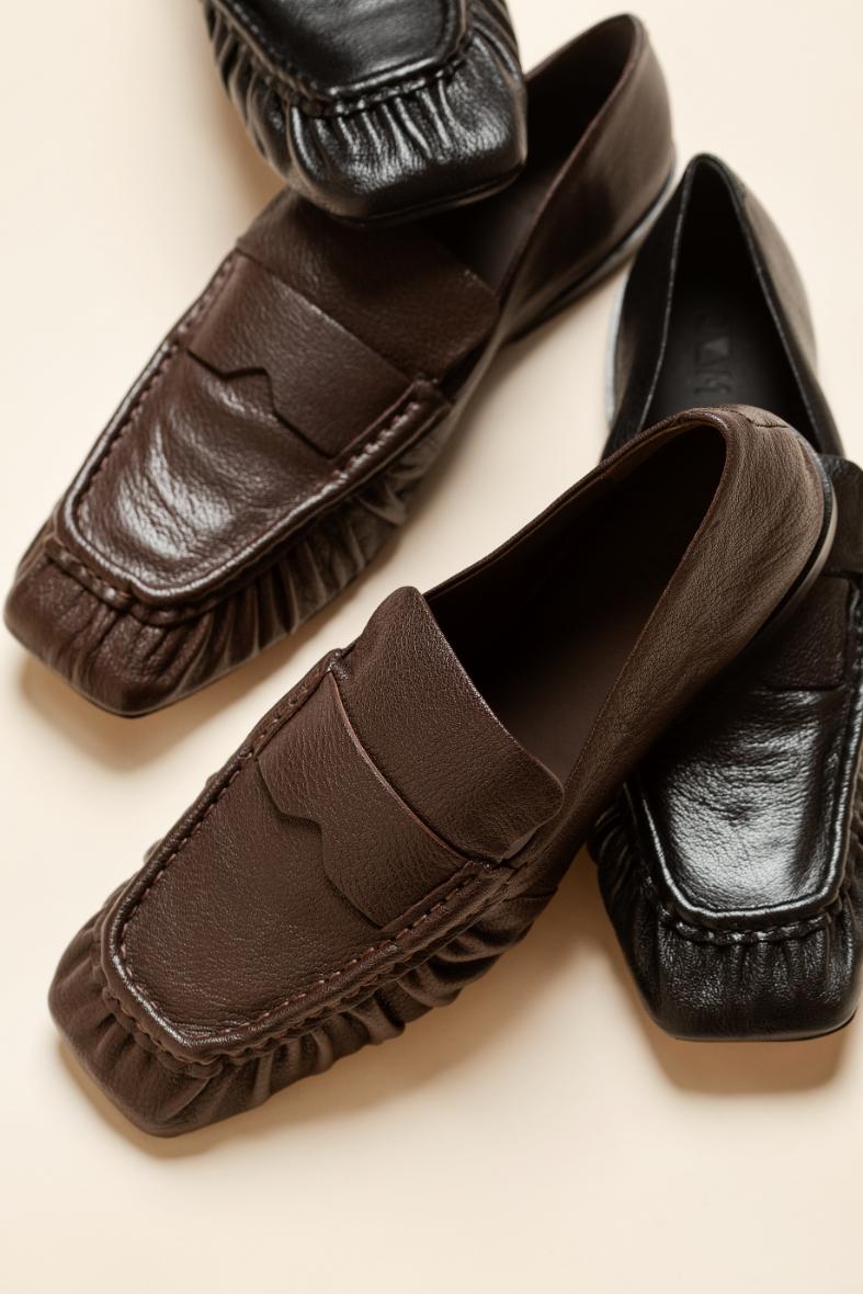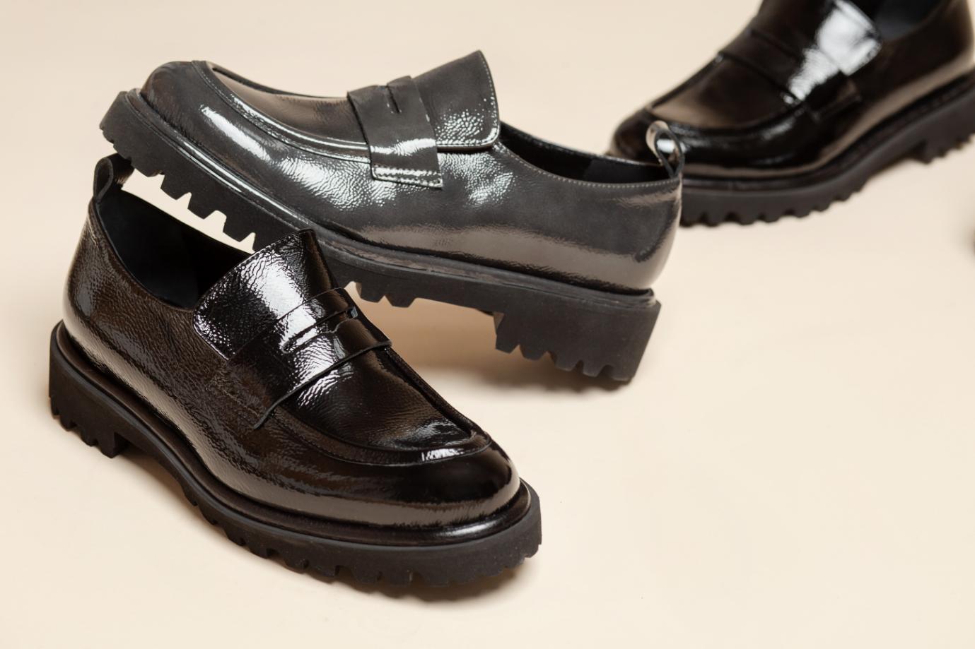 Mocassini in nappa morbidissima, ballerine e college shoes dalle forme rivisitate, décolleté affusolate in vernice lucente.